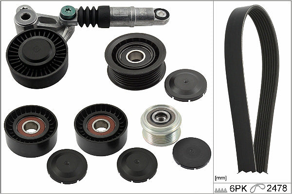 The timing belt system controls the combustion process and the the camshaft drive operation, which opens and closes the valves at the right time. To do this consistently requires accurate tensioning throughout the whole timing belt route, so that all tensioner and deflection pulleys operate in perfect synchronisation. The requirements placed on drive components has continuously increased in the last few years. Higher loads in the engine compartment combined with a longer life expectancy means that garages have to replace all of the belt drive system components at the same time, in line with the recommended change point specified by the vehicle manufacturer.As a technical partner and supplier of complete drive systems to the world's leading vehicle producers, INA offers the widest range of OE content Timing Belt KITs available to the UK aftermarket.INA KITs also contain everything needed for a professional belt system service, right down to the last nut, bolt and washer. If the application features a timing belt driven water pump, INA also offers a comprehensive range of Timing Belt KIT+ Water Pump references to suit.