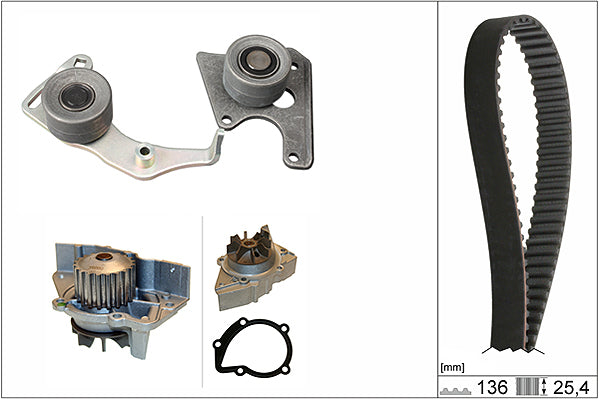 The timing belt system controls the combustion process and the the camshaft drive operation, which opens and closes the valves at the right time. To do this consistently requires accurate tensioning throughout the whole timing belt route, so that all tensioner and deflection pulleys operate in perfect synchronisation. The requirements placed on drive components has continuously increased in the last few years. Higher loads in the engine compartment combined with a longer life expectancy means that garages have to replace all of the belt drive system components at the same time, in line with the recommended change point specified by the vehicle manufacturer.As a technical partner and supplier of complete drive systems to the world's leading vehicle producers, INA offers the widest range of OE content Timing Belt KITs available to the UK aftermarket.INA KITs also contain everything needed for a professional belt system service, right down to the last nut, bolt and washer. If the application features a timing belt driven water pump, INA also offers a comprehensive range of Timing Belt KIT+ Water Pump references to suit.