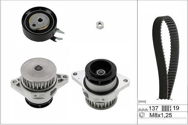 The timing belt system controls the combustion process and the the camshaft drive operation, which opens and closes the valves at the right time. To do this consistently requires accurate tensioning throughout the whole timing belt route, so that all tensioner and deflection pulleys operate in perfect synchronisation. The requirements placed on drive components has continuously increased in the last few years. Higher loads in the engine compartment combined with a longer life expectancy means that garages have to replace all of the belt drive system components at the same time, in line with the recommended change point specified by the vehicle manufacturer.As a technical partner and supplier of complete drive systems to the world's leading vehicle producers, INA offers the widest range of OE content Timing Belt KITs available to the UK aftermarket.INA KITs also contain everything needed for a professional belt system service, right down to the last nut, bolt and washer. If the application features a timing belt driven water pump, INA also offers a comprehensive range of Timing Belt KIT+ Water Pump references to suit.