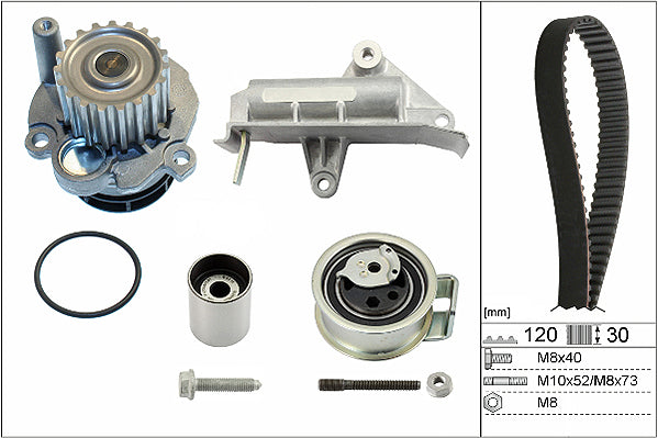 The timing belt system controls the combustion process and the the camshaft drive operation, which opens and closes the valves at the right time. To do this consistently requires accurate tensioning throughout the whole timing belt route, so that all tensioner and deflection pulleys operate in perfect synchronisation. The requirements placed on drive components has continuously increased in the last few years. Higher loads in the engine compartment combined with a longer life expectancy means that garages have to replace all of the belt drive system components at the same time, in line with the recommended change point specified by the vehicle manufacturer.As a technical partner and supplier of complete drive systems to the world's leading vehicle producers, INA offers the widest range of OE content Timing Belt KITs available to the UK aftermarket.INA KITs also contain everything needed for a professional belt system service, right down to the last nut, bolt and washer. If the application features a timing belt driven water pump, INA also offers a comprehensive range of Timing Belt KIT+ Water Pump references to suit.