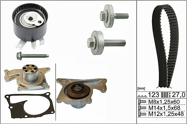 The timing belt system controls the combustion process and the the camshaft drive operation, which opens and closes the valves at the right time. To do this consistently requires accurate tensioning throughout the whole timing belt route, so that all tensioner and deflection pulleys operate in perfect synchronisation. The requirements placed on drive components has continuously increased in the last few years. Higher loads in the engine compartment combined with a longer life expectancy means that garages have to replace all of the belt drive system components at the same time, in line with the recommended change point specified by the vehicle manufacturer.As a technical partner and supplier of complete drive systems to the world's leading vehicle producers, INA offers the widest range of OE content Timing Belt KITs available to the UK aftermarket.INA KITs also contain everything needed for a professional belt system service, right down to the last nut, bolt and washer. If the application features a timing belt driven water pump, INA also offers a comprehensive range of Timing Belt KIT+ Water Pump references to suit.