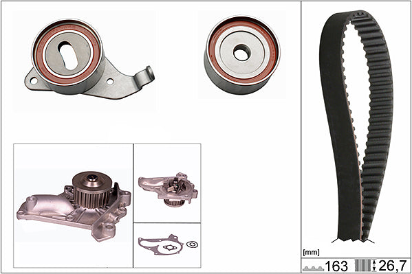 The timing belt system controls the combustion process and the the camshaft drive operation, which opens and closes the valves at the right time. To do this consistently requires accurate tensioning throughout the whole timing belt route, so that all tensioner and deflection pulleys operate in perfect synchronisation. The requirements placed on drive components has continuously increased in the last few years. Higher loads in the engine compartment combined with a longer life expectancy means that garages have to replace all of the belt drive system components at the same time, in line with the recommended change point specified by the vehicle manufacturer.As a technical partner and supplier of complete drive systems to the world's leading vehicle producers, INA offers the widest range of OE content Timing Belt KITs available to the UK aftermarket.INA KITs also contain everything needed for a professional belt system service, right down to the last nut, bolt and washer. If the application features a timing belt driven water pump, INA also offers a comprehensive range of Timing Belt KIT+ Water Pump references to suit.