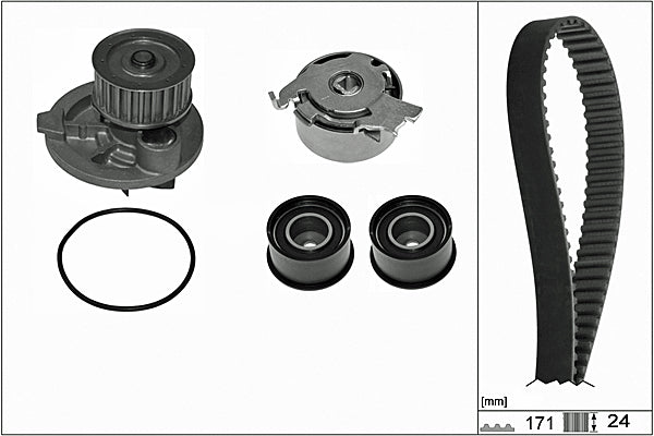 The timing belt system controls the combustion process and the the camshaft drive operation, which opens and closes the valves at the right time. To do this consistently requires accurate tensioning throughout the whole timing belt route, so that all tensioner and deflection pulleys operate in perfect synchronisation. The requirements placed on drive components has continuously increased in the last few years. Higher loads in the engine compartment combined with a longer life expectancy means that garages have to replace all of the belt drive system components at the same time, in line with the recommended change point specified by the vehicle manufacturer.As a technical partner and supplier of complete drive systems to the world's leading vehicle producers, INA offers the widest range of OE content Timing Belt KITs available to the UK aftermarket.INA KITs also contain everything needed for a professional belt system service, right down to the last nut, bolt and washer. If the application features a timing belt driven water pump, INA also offers a comprehensive range of Timing Belt KIT+ Water Pump references to suit.