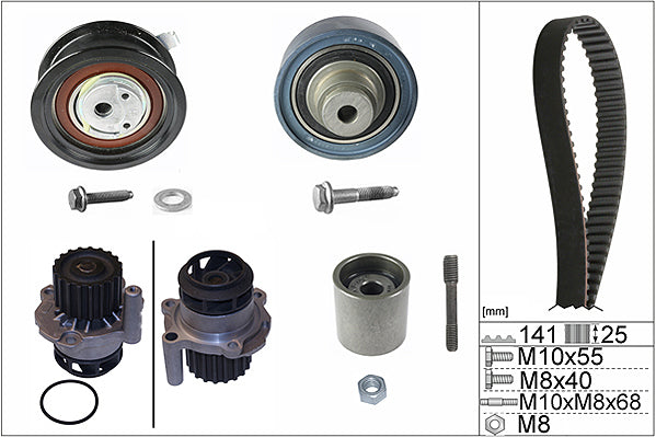 The timing belt system controls the combustion process and the the camshaft drive operation, which opens and closes the valves at the right time. To do this consistently requires accurate tensioning throughout the whole timing belt route, so that all tensioner and deflection pulleys operate in perfect synchronisation. The requirements placed on drive components has continuously increased in the last few years. Higher loads in the engine compartment combined with a longer life expectancy means that garages have to replace all of the belt drive system components at the same time, in line with the recommended change point specified by the vehicle manufacturer.As a technical partner and supplier of complete drive systems to the world's leading vehicle producers, INA offers the widest range of OE content Timing Belt KITs available to the UK aftermarket.INA KITs also contain everything needed for a professional belt system service, right down to the last nut, bolt and washer. If the application features a timing belt driven water pump, INA also offers a comprehensive range of Timing Belt KIT+ Water Pump references to suit.