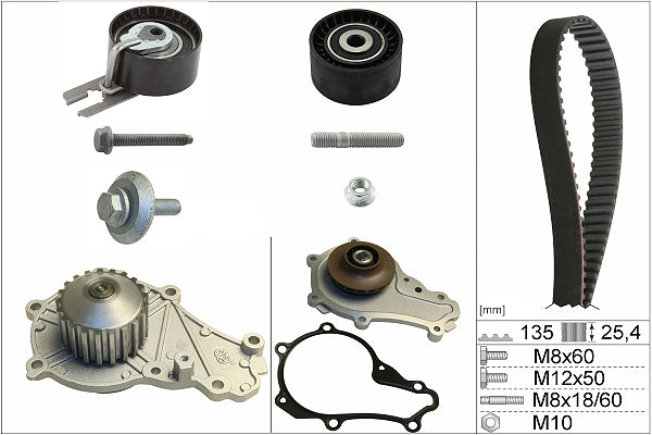The timing belt system controls the combustion process and the the camshaft drive operation, which opens and closes the valves at the right time. To do this consistently requires accurate tensioning throughout the whole timing belt route, so that all tensioner and deflection pulleys operate in perfect synchronisation. The requirements placed on drive components has continuously increased in the last few years. Higher loads in the engine compartment combined with a longer life expectancy means that garages have to replace all of the belt drive system components at the same time, in line with the recommended change point specified by the vehicle manufacturer.As a technical partner and supplier of complete drive systems to the world's leading vehicle producers, INA offers the widest range of OE content Timing Belt KITs available to the UK aftermarket.INA KITs also contain everything needed for a professional belt system service, right down to the last nut, bolt and washer. If the application features a timing belt driven water pump, INA also offers a comprehensive range of Timing Belt KIT+ Water Pump references to suit.