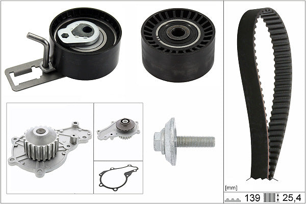 The timing belt system controls the combustion process and the the camshaft drive operation, which opens and closes the valves at the right time. To do this consistently requires accurate tensioning throughout the whole timing belt route, so that all tensioner and deflection pulleys operate in perfect synchronisation. The requirements placed on drive components has continuously increased in the last few years. Higher loads in the engine compartment combined with a longer life expectancy means that garages have to replace all of the belt drive system components at the same time, in line with the recommended change point specified by the vehicle manufacturer.As a technical partner and supplier of complete drive systems to the world's leading vehicle producers, INA offers the widest range of OE content Timing Belt KITs available to the UK aftermarket.INA KITs also contain everything needed for a professional belt system service, right down to the last nut, bolt and washer. If the application features a timing belt driven water pump, INA also offers a comprehensive range of Timing Belt KIT+ Water Pump references to suit.