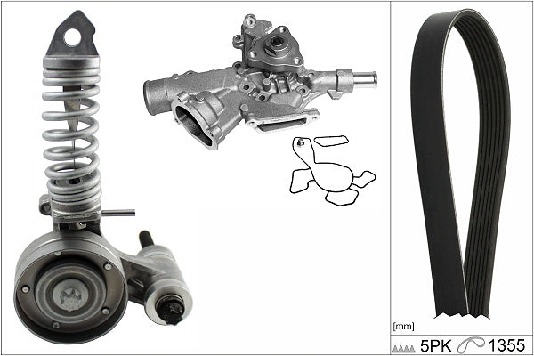 INA Water Pump + V-Ribbed Belt Set - Part No - 529029730