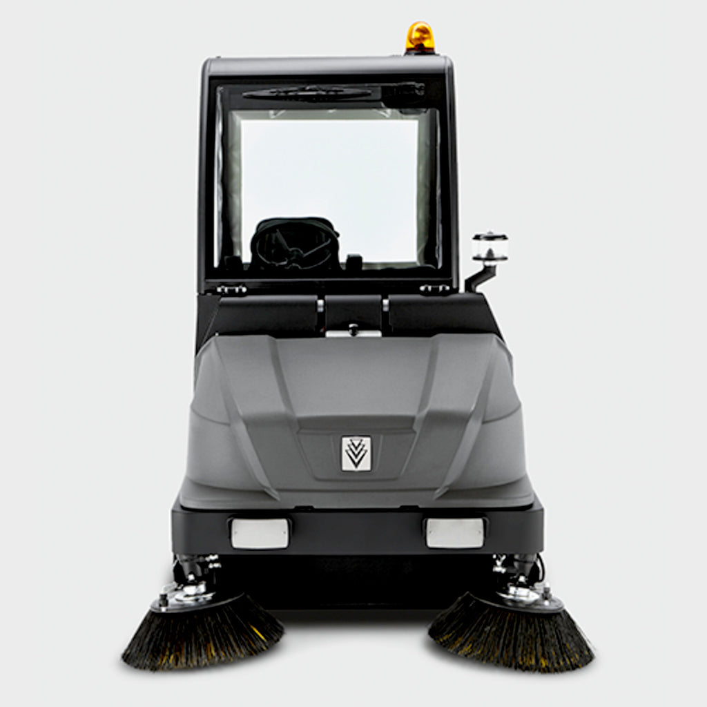 Supplied direct from Karcher. If you'd like a free site assessment or demo of this product before purchasing, please make an enquiry now.The battery powered KM 130/300 R Bp Pack with three-wheel rear steering operates with low noise and no exhaust emissions. With the dustpan principle, fine waste and coarse dirt are safely vacuumed. The waste container automatically closes during transport. The roller brush automatically adapts to uneven surfaces and can be replaced quickly without tools. A redesigned sweeping system reduces wear and tear. Two horizontally installed flat fold filters ensure clean air even where there are large volumes of dust. Filter cleaning can be done with the push of a button using a highly effective dual scraper. The filter is easily accessible and can be changed without the need for tools. The basic functions can be conveniently selected with a control thanks to the EASY Operation Concept.