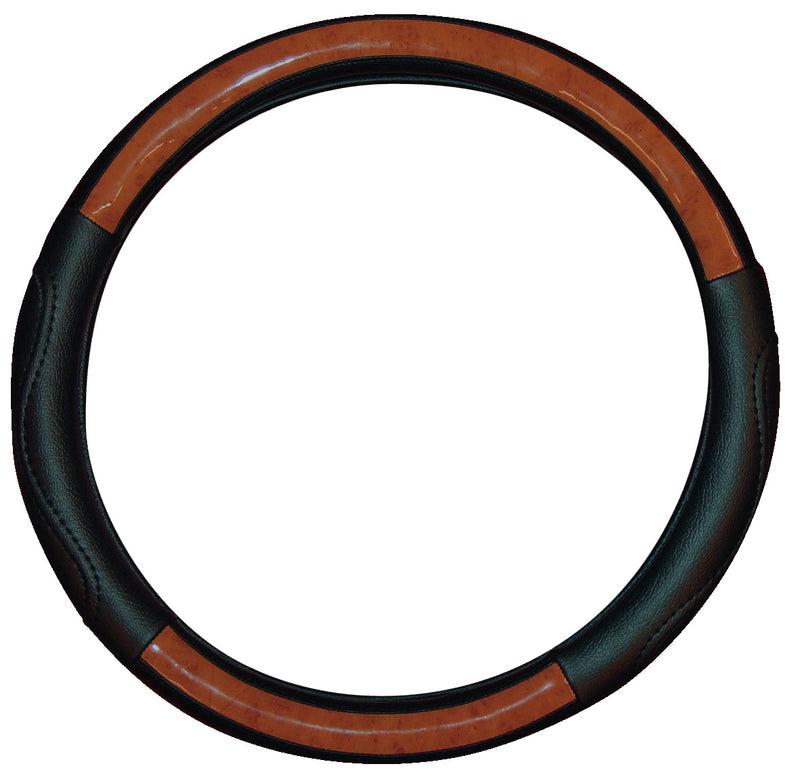 Leatherlook Momentum Steering Wheel Cover (Black/Walnut)