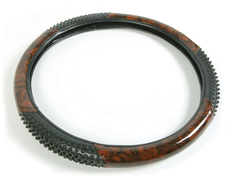 Leatherlook Orbit Steering Wheel Cover (Black/Walnut)