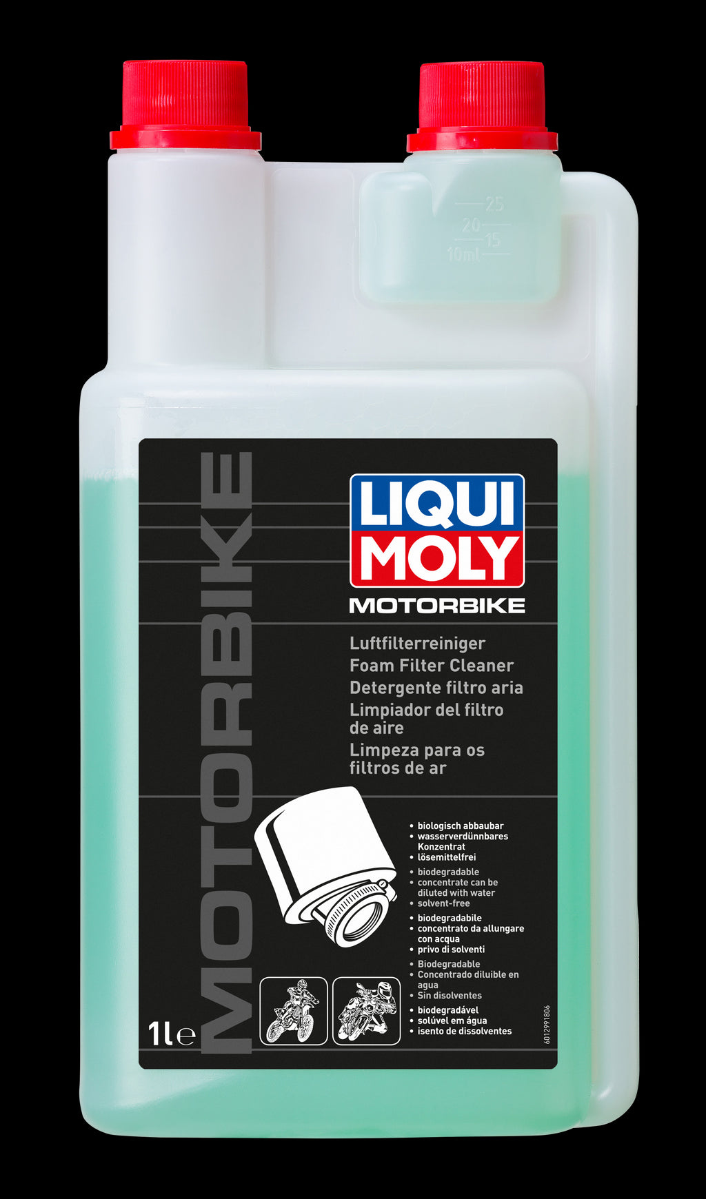 - Allow to dry before installation and wet with LIQUI MOLY Motorbike Air Filter Oil