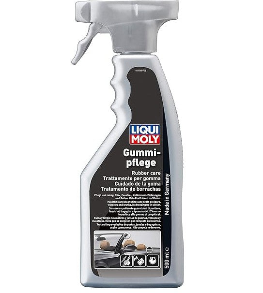 Especially for maintaining and protecting and treating rubber parts such as tires, door seals, mats etc. in the automotive sector.