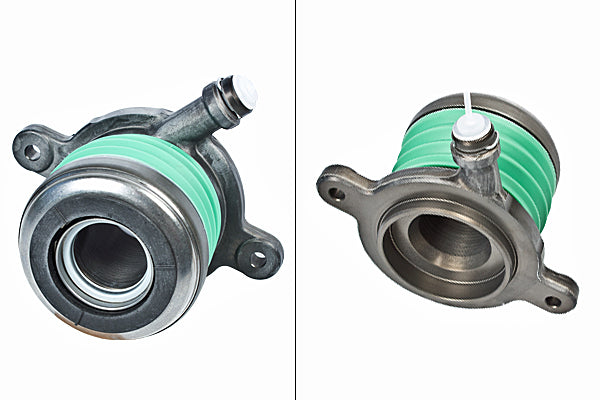 In a modern clutch system it is now more common for pedal force to be transferred by hydraulics rather than a cable. The clutch is actuated by a concentric slave cylinder (CSC), which performs the combined functions of slave cylinder and release bearing.In systems using a CSC, there is no need for release fork or release shaft components. The CSC is positioned directly on the transmission input shaft in the transmission housing. This reduces the number of moving parts in the release system, minimising wear and error influences.LuK CSCs are manufactured to exacting OE specifications and quality standards.