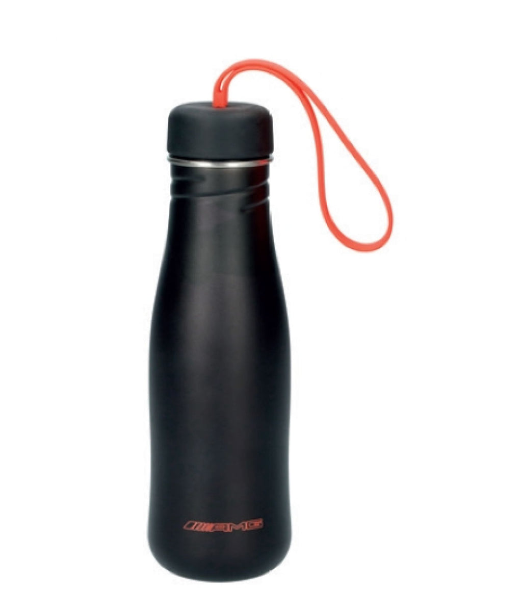 Drink enough on the go: the black AMG drinking bottle with a red strap is made of high-quality stainless steel and has a leak-proof silicone lid and a practical silicone strap for easy transport. It does not give off any taste to the contents and can be easily cleaned in the dishwasher after use. With its red AMG logo, it skilfully sets elegant accents and offers space for up to 0.7 l of liquid.