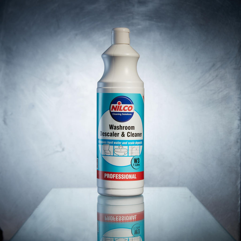 A strongly acidic, solvent-free de-scaler designed to dissolve hard water deposits on acid-resistant fixtures and fittings in bathrooms and washrooms.