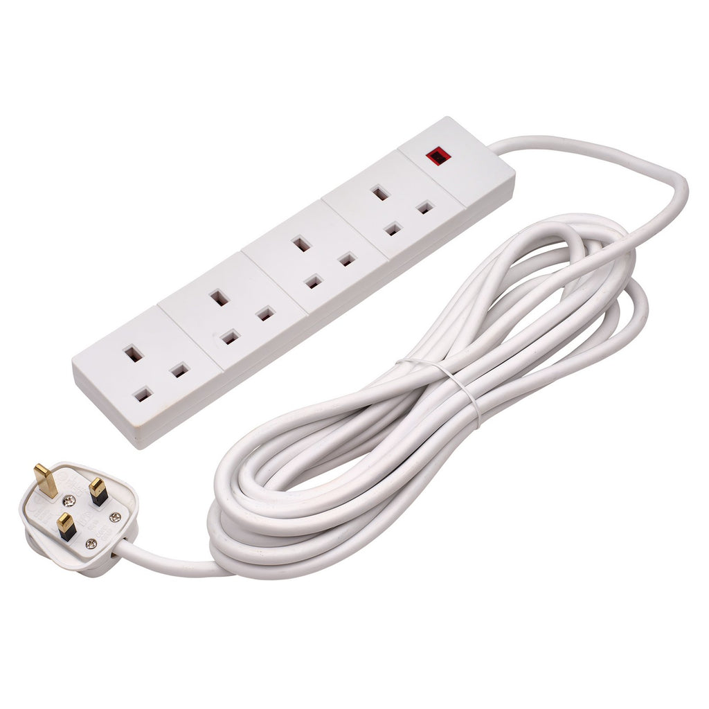 This 4-way extension lead is ideal for powering household appliances and is also suitable for commercial use. The cable is 5m long. The trailing socket can be fixed to the wall for added convenience and features a neon indicator to show if it is receiving power. It is fitted with a 13A fused UK 3-pin plug and complies with the latest BS regulations. For indoor use.
