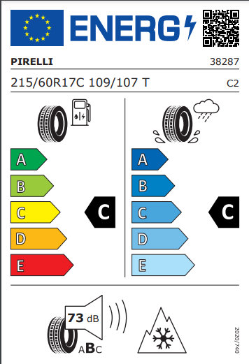 About this tyre - Size - 215/60/17 109T, Fuel Efficiency - C, Noise (dB) - 73, Wet Grip - C, Runflat - NoAs the only component on your vehicle that actually makes contact with the road surface, tyres are critical for safety when driving.How do you read the markings on a tyre?The markings on a tyre indicate its size, load index and speed rating. A typical tyre marking looks like this - 205/55 R16 W 91. What is the UK legal tyre limit?The minimum tread depth required by law in the UK is 1.6mm. This applies to the central three-quarters of the tyre’s width and its entire circumference. Many car manufacturers, however, advise changing your tyres once the tread is down to 3mm to be on the safe side. What are tyre speed ratings?A tyre speed rating is the maximum speed a particular tyre is legally approved for. The rating is represented by a letter displayed on the tyre sidewall. It will always be the last letter in the sequence.