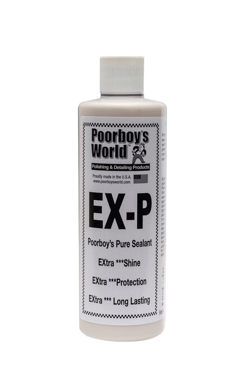 Poorboys EX-P is revolutionary in the world of paint sealants. Typically, applying a paint sealant in direct sunlight is a BIG no-no. Well, EX-P shatters the rules on that one! Designed especially for use in high temperature climates on cars that sit in the hot, hot sun day after day: Its virtually a paint sealer on steroids! Because its so easy to apply, smells, looks and feels like tropical sun block, and can be used in the sun, you may just find looking forward to wax day!. EX-P Sealant is an Amino Functional Resin sealant to provide protection and shine for clear coat or pigmented paints. . May be applied in sun or shade.. Apply to a small section of the car, carefully working it into the paint until it hazes and then buff off. . .
