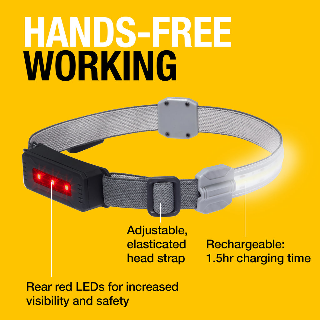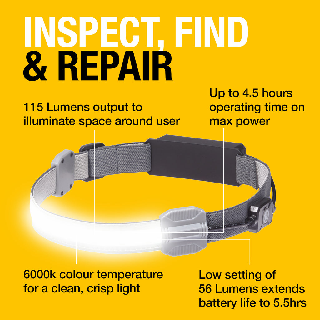 Designed for close quarter work, the flat design allows users to get closer in, without any of the knocking or bumping you get with a protruding headtorch. The 115 lumens output is bright enough for clear illumination of a wide area. A red LED on the back is perfect for being seen when working at night or in poor light.