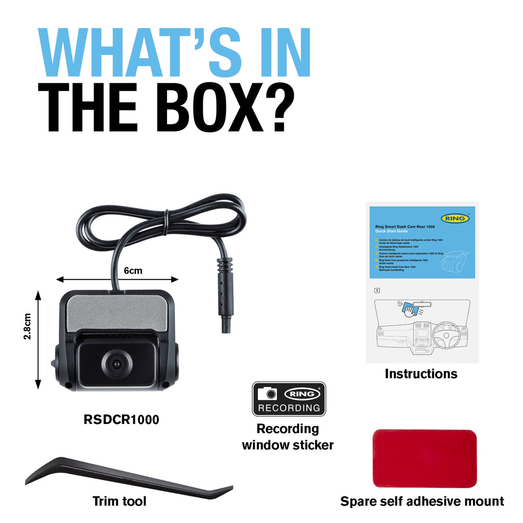 Ring RSDCR1000 Smart Dash Camera is a full HD 1080p resolution dash cam. A 140° field of view and 30fps create a high quality image. Compatible with the Ring RSDC3000 Smart Dash Cam and the Ring RSDC4000 Smart Dash Cam for a full picture of what is going around the whole vehicle.