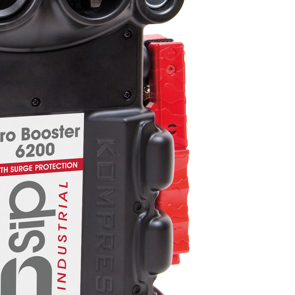 The SIP 12v/24v Pro Booster 6200 is a purpose-designed rechargeable battery booster pack that uses proven and reliable AGM technology to provide powerful boost-starting performance. It offers a high crank rate ideal for a range of applications.Increased durability is achieved through a robust and shockproof ABS casing, plus heavy-duty clamps and copper-cored cables. Perfect for professional environments.Integrated reverse polarity protection offers added safety, while the accompanying audible alert captures attention in busy or loud environments for added peace-of-mind.For added versatility, the 6200 has an integrated 12v DC portable power supply suitable for charging a range of electronic devices directly from the pack.Ideal for boosting motorcycles, cars, vans, trucks, tractors, excavators and HGVs.• 6200A boost peak rate and 1880A cranking rate (12v)• 3100A boost peak rate and 940A cranking rate (24v)• Rechargeable and proven AGM pack with high crank rate• 12v DC power take-off powers electronic devices directly• Heavy-duty clamps and high-quality copper-cored cables• Robust and shockproof ABS casing for added durability• Reverse polarity protection with an audible alert• Integrated digital display with voltage indicator• Supplied with mains fast charger• Fitted with an ON/OFF switch• SIP 2-Year Standard Silver Warranty*• Manufactured in SwitzerlandNOTE: *12 month warranty on maintained batteries.