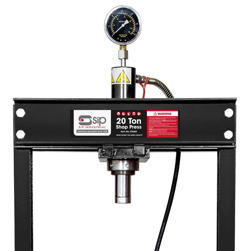 The SIP 20 TON Shop Floor Press is perfect for a variety of applications in garage or workshop applications, offering heavy-duty manually-operated pressing performance within a robust and exceptionally durable frame, plus a fully adjustable workbed.This press can be used for pressing bearings, bushings or sleeves, bending or shaping metal rods or bars, straightening bent metal, bonding and riveting, punching holes in sheets and plates, or forming sheets into various shapes. It is particularly well-suited for the removal and installation of bearings, wrist pins, universal joints and pulleys.A glycerine-filled manometer helps protect the gauge and provides higher accuracy readings, plus durability against less-than-ideal conditions and corrosion.• 20 TON floor-standing manually-operated press• 29.5mm to 989.9mm work range and a 185mm ram stroke• Heavy-duty steel frame for increased durability• Fully adjustable workbed for improved versatility• Suitable for pressing, bending, bonding and straightening• Bearing, wrist pin, universal joint and pulley removal• Glycerine-filled manometer for durability• SIP 2-Year Standard Silver Warranty