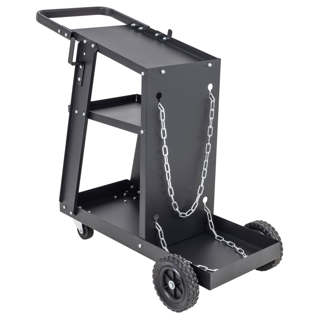 The SIP 3-Tier Welding Cart is designed offer a wheel-mounted solution for welders and accessories, acutely designed to hold larger gas bottles up to 50kg via a rear storage shelf and high-quality load chains plus multiple accessory shelves.• Heavy-duty wheel-mounted cart with all-metal design• Holds larger gas bottles up to 50kg via rear storage shelf• Quality chains keep bottles and accessories tidy and secure• Multiple shelves and holding hooks for torches and consumables• Ideal for a range of heavy-duty SIP welders and inverters• Lightweight and compact design for easy manoeuvrability• Easy assembly for quick setup and effortless operation• SIP 2-Year Standard Silver Warranty