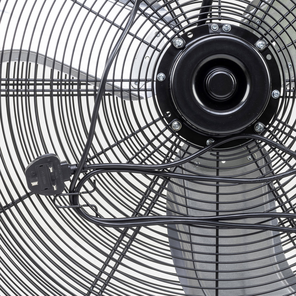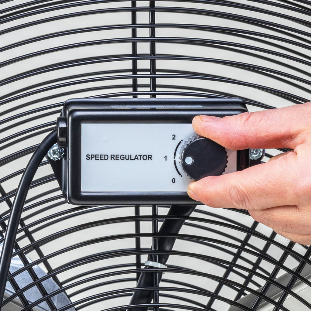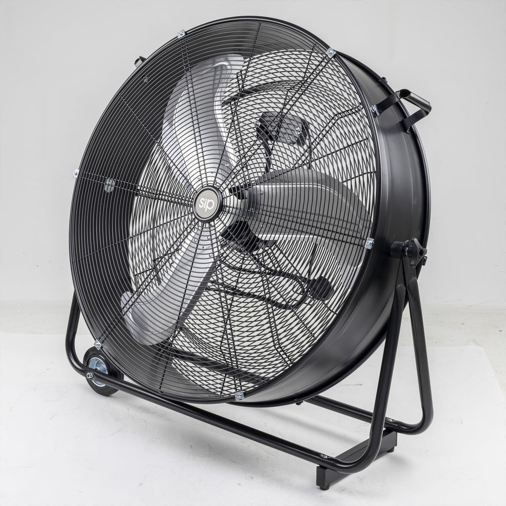The SIP 30" Heavy-Duty Drum Fan delivers powerful variable speed airflow to help cool spaces and circulate air in a variety of indoor industrial environments.Wheel-mounted on a cradled steel frame, the drum enclosed, heavy-duty 3-blade fan can be rotated between 360° on its vertical axis to maximise airflow coverage.Fans are essential in helping to provide improved air quality to indoor spaces.Applications & uses: Delivers powerful variable speed air circulation to indoor spaces. Perfect for industrial, commercial and agricultural workshop areas.SIP 2-Year Standard Silver Warranty• Powerful airflow: A heavy-duty 3-blade fan is powered from a 123w motor to deliver powerful and consistent airflow coverage.• Variable speed settings: Two settings for variable fan speed: Setting 1 (850rpm), Setting 2 (950rpm).• Dynamic airflow function: The adjustable tilting fan head can be rotated 360° on its vertical axis for greater airflow coverage.• Outstanding mobility: The wheel-mounted, cradled steel frame is fitted with pull handles which allows the fan to be easily moved between locations for use.• Enhanced safety features: Fan blades are fully enclosed with solid mesh steel guarding for greater user safety. A robust and balanced steel frame maintains fan stability when in use.