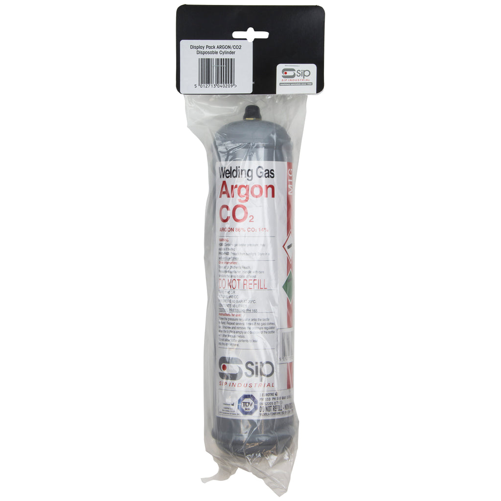 The SIP 390g Argon/CO2 Disposable Gas Bottle is designed for use in all MIG welding applications, with this mixture particularly suited for steel types including stainless and carbon. Available as a single bottle only with accompanying hanging card and bag.• High-quality welding gas in pressurised steel bottle• Designed for all mild steel MIG welding applications• Particularly suited for stainless and carbon steels• Convenient and superb value-for-money
