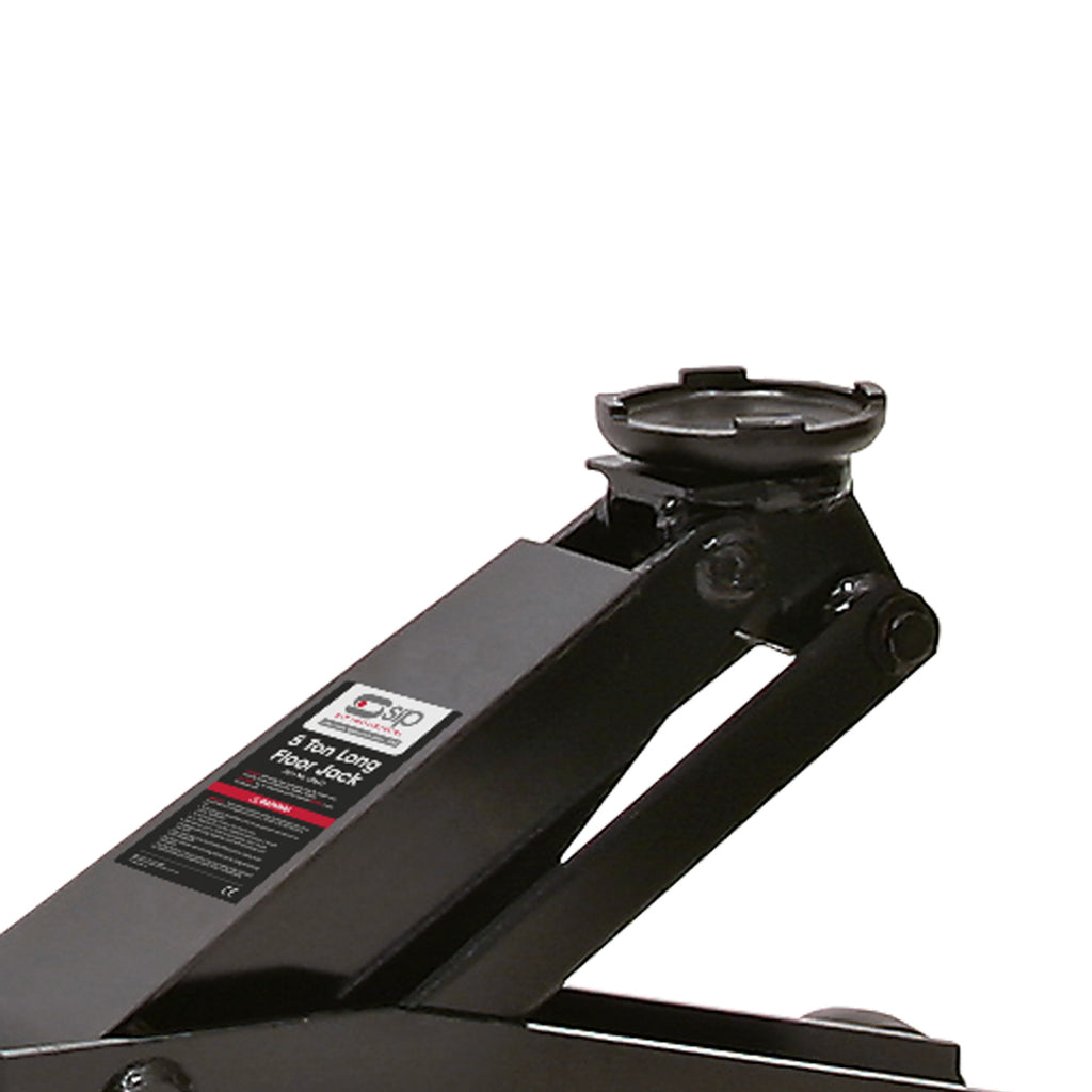 The SIP 5 TON Long Floor Jack is perfect for gaining easier access under larger and wider vehicles, including cars, SUVs, vans, trucks, trailers and more, offering powerful and reliable performance from a robust and stable steel-manufactured design.This is achieved by an extra-long design complete with long handle, ensuring that regardless of vehicle size, the jack can be positioned for powerful and secure lifting. For added manoeuvrability, it is fitted with a rear toe plate and large wheels and castors.An integrated Quick-Lift system, operated via foot pedal, is designed to reduce the user effort exerted by quickly, safely and efficiently raising the saddle to the lifting point.For optimal user safety, the 5 TON Long Floor Jack is built with a release knob to help lower any vehicles slowly in a controlled manner, and handle lock to prevent the jack from accidentally disengaging, reducing the risk to the operator.• 5 TON maximum weight capacity• 150mm to 560mm adjustable lifting height• Extra-long design for easier access under larger vehicles• Quick-Lift foot pedal system raises the saddle efficiently• Large 130mm contact saddle for secure load contact• Built-in release knob and integrated handle lock• Integrated rear toe plate for easy positioning• Large wheels and castors for manoeuvrability• SIP 2-Year Standard Silver Warranty