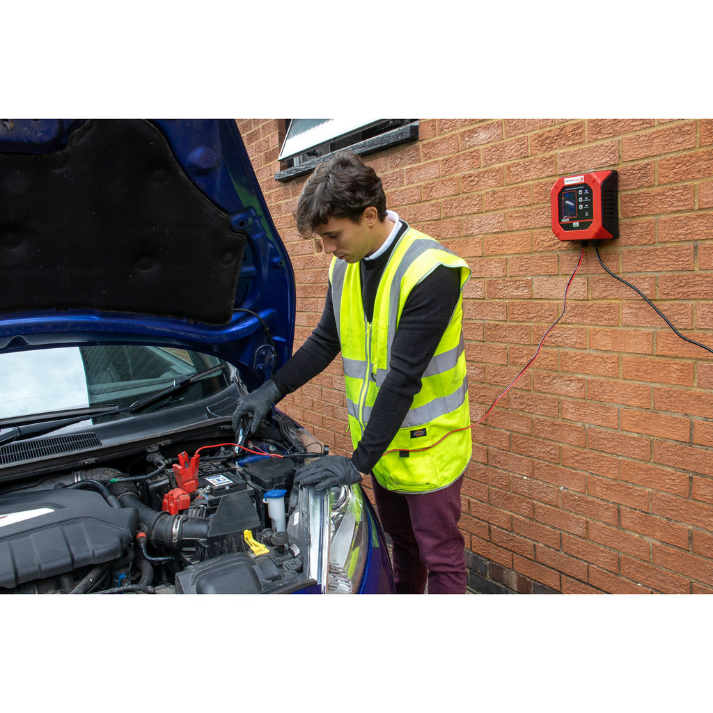 The SIP Advanced Battery Charger GX15 is the ultimate tool for charging, support and diagnostics. Easy-to-use and wall-mountable, the GX15 is extremely versatile and combines intelligent charging, maintenance, supply and more into a simple process.The GX15 is compatible with a variety of commonly-used batteries such as Lead Acid, SLA, AGM, GEL, WET, VRLA, CaCa, EFB and LiFePO4. This makes it suitable for vehicles including ATVs, motorcycles, cars, vans, boats, trucks and HGVs.This charger is controlled by a microprocessor that provides powerful multi-step charging, and offers modes including supply, test, lead, Lithium and reconditioning.Supplied with quick connector, clamps and eyelets.• 12v/24v output voltages and 15A output current• Powerful multi-step microprocessor-controlled charging• High-quality, clear and easy-to-use advanced digital interface• Automatic maintenance, supply, test, lead, Lithium, reconditioning modes• Wall-mountable for permanent placement in workshop environments• Energy-efficient charging performance for reduced energy costs• Spark protection and IP20 touch and dust resistance• Quick connector, clamps and eyelets• SIP 2-Year Standard Silver Warranty• Designed in Switzerland