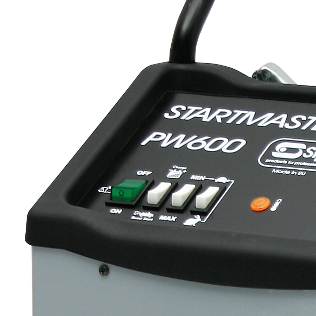 The SIP STARTMASTER PW600 Battery Starter Charger offers powerful performance from a mobile and wheel-mounted design complete with durable metal casing. Perfect for easily jump-starting cars and small vehicles.The STARTMASTER PW600 is compatible with batteries including Lead Acid, SLA, AGM, GEL, WET and VRLA. Ideal for a range of garages and workshops.A range of protections including reverse polarity, short circuit and overload protection provides added peace-of-mind and increased user safety.• 12v/24v charging voltage and 300A max. boost rate• 280Ah max. battery capacity and 45A charging current• 3 powerful charge rate settings for added versatility• Integrated clear easy-to-read ammeter for high accuracy• Mobile wheel-mounted design with durable metal casing• Reverse polarity, short circuit and overload protections• Quality design including crocodile clamps and leads• SIP 2-Year Standard Silver Warranty• Manufactured in Italy