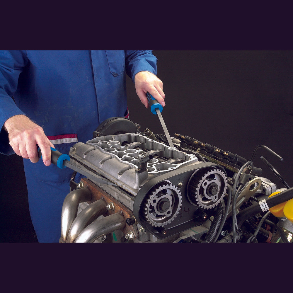 Chemically blackened finished blades with striking caps and impact-resistant soft-grip handles.