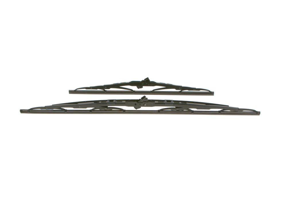 - 1 set of front wiper blades, driver side (length: 550mm) and passenger side (length: 475mm)Aerodynamic with symmetric spoiler: Stops lifting and vibrations through reduced windage for improved driver comfort and better performance at higher speedsNatural rubber wiper technology with graphite coating: For outstanding cleaning and an even smoother actionHigh-tech spring strip evenly distributes the contact pressure across the windscreen: For a consistent clean and a clear viewWear-resistant micro double-edge wiper rubber: Improves service lifeRobust full-metal frame system with double-corrosion protection: Offers lasting safety even in extreme weather conditionsPre-assembled Quick-Clip universal adapter for vehicles with hook-type wiper arms: Enables quick and easy installation