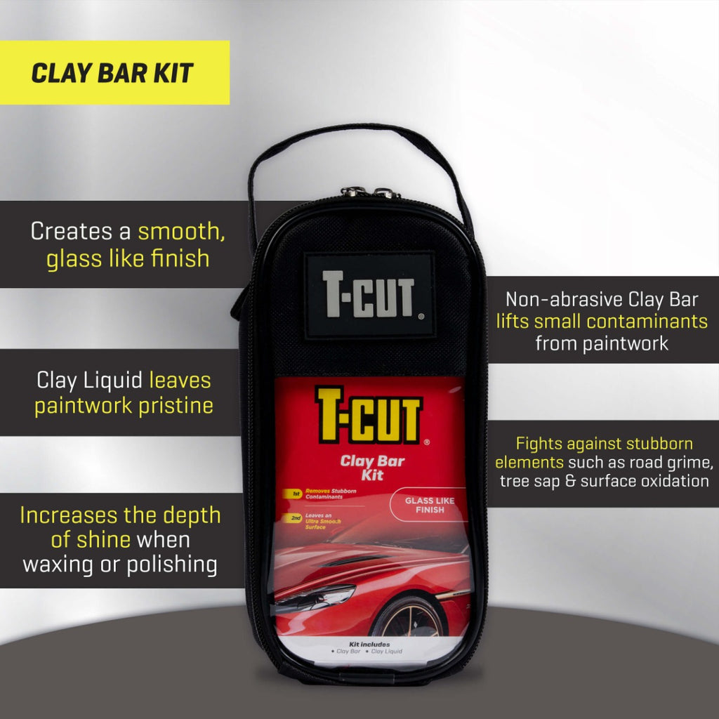Includes a non-abrasive Clay Bar that lifts small contaminants from paintwork, to be used alongside T-Cut Clay Liquid to provide that pristine finish
