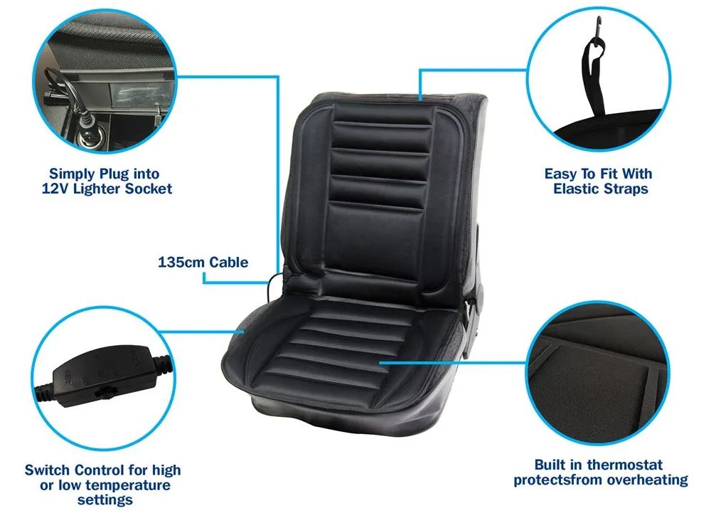 This 12V heated seat cushion helps to keep you nice and warm during your cold winter drives. This heated seat cushion is easy-to-use. All you need to do is plug the cushion to your vehicle’s 12V socket and select your heat setting.