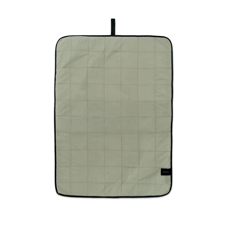 Made from 100% recycled nylon with an insulated 100% recycled polyester filling, the blanket has a water and dirt-repellent finish that is FC-free and features a fishbone ribbon that can be used as a handle.