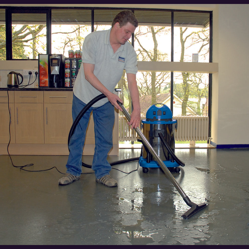 Professional high volume model with robust stainless steel tank. Designed to pick up wet and dry materials it has a 50L tank volume. The cleaner is fitted with an automatic power tool socket which allows the user to plug in a power tool (max. 2200W) and run it directly off the cleaner. The power tools dust extraction facility is connected via the vacuums hose with the whole operation controlled by the power tool's on/off switch. Ideally suited for use in the workshop and garage. 4m (approx.) cable and approved plug. The cleaner is Supplied with the following; Foam filter, Paper dust bag, HEPA 0.3 micron cartridge filter, 5M flexible hose with hand grip and air control, Two extension tubes 480mm long, Wet and Dry floor attachment, Crevice nozzle, Upholstery attachment, Power tool dust extraction adaptor All accessories are 35mm diameter.