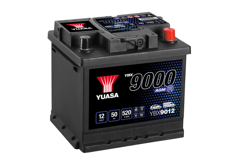 YBX9012 12V 50Ah 520A Yuasa AGM Start Stop Plus Battery. European DIN Type.