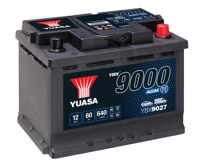 YBX9027 12V 60Ah 640A Yuasa AGM Start Stop Plus Battery. European DIN Type.